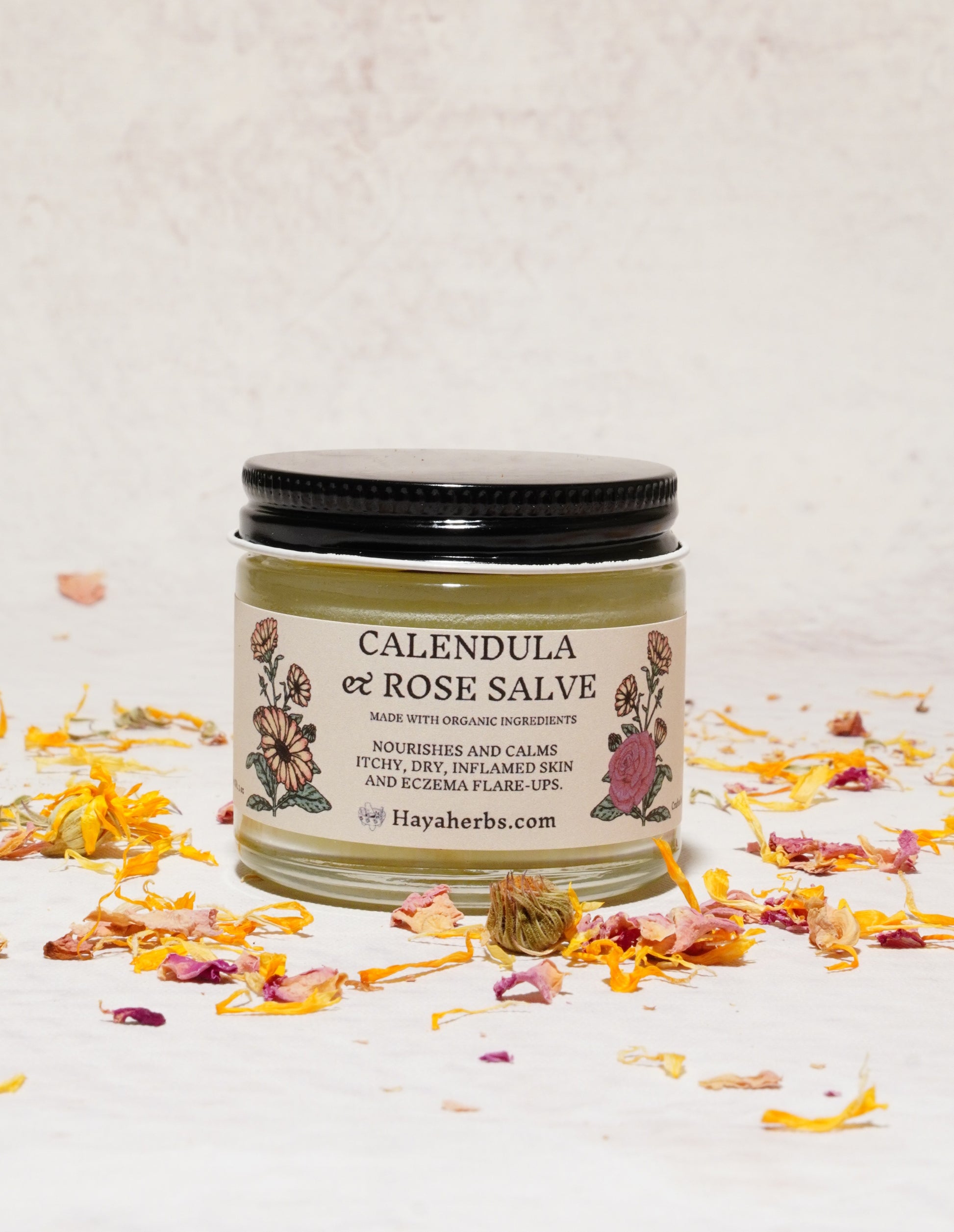 Soothe and protect your skin with our Calendula & Rose Healing Salve, a gentle yet powerful balm crafted to nourish and restore. Infused with the calming properties of calendula and the soothing essence of rose, this salve is specially designed to: