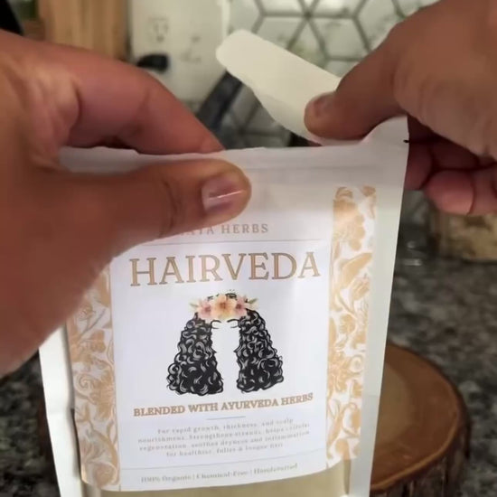 Unlock the power of Ayurveda with HairVeda, a nutrient-rich herbal hair mask designed to promote rapid growth, thickness, and scalp nourishment. This potent blend of organic Ayurvedic herbs works to strengthen strands, prevent premature greying, and restore balance to the scalp. Inspired by centuries-old Ayurvedic wisdom, HairVeda helps cleanse the scalp of impurities and revitalizes hair from root to tip for fuller, healthier, and longer strands. This masque does not contain ingredients that alter the color of hair.