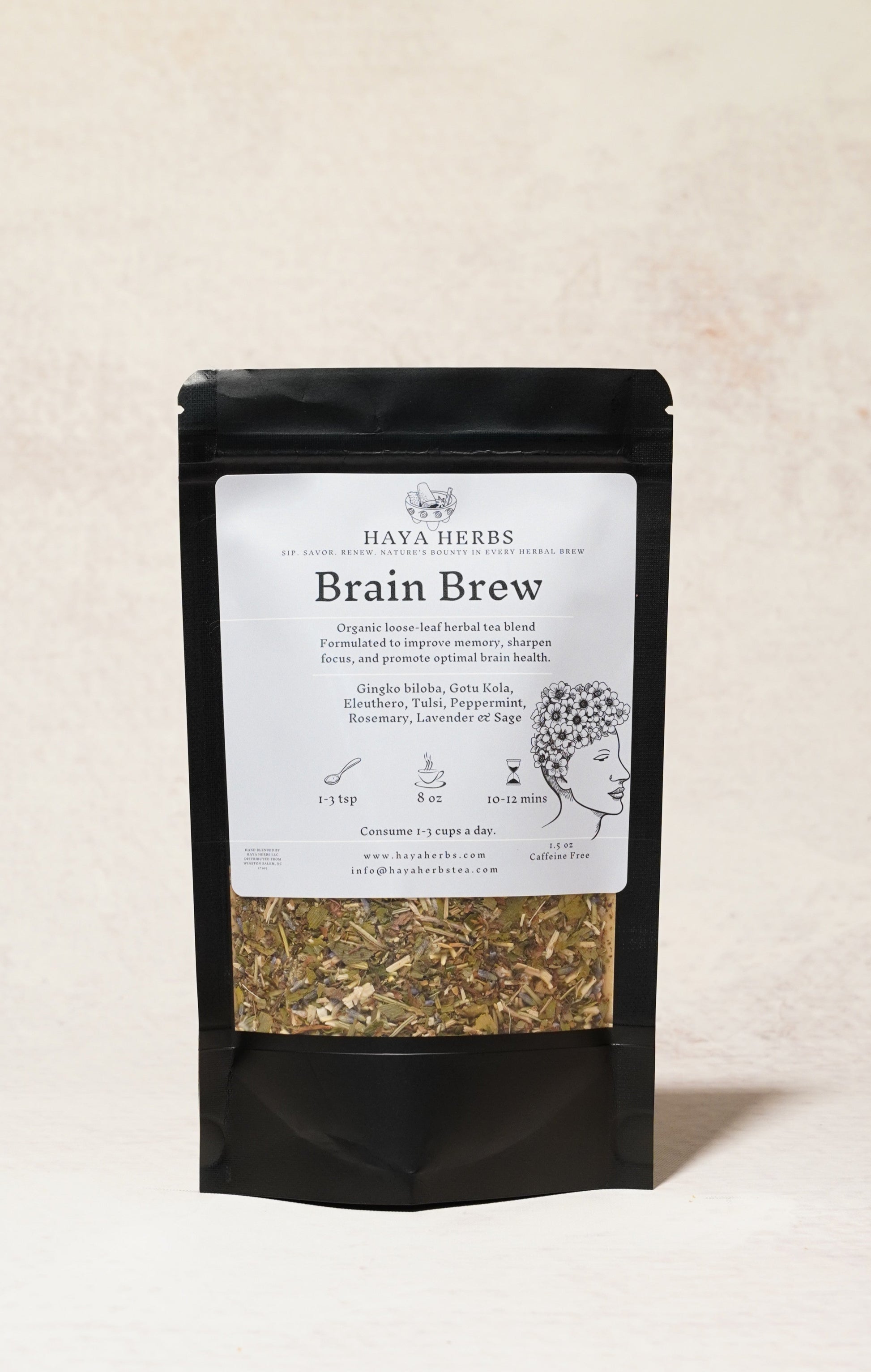 - Brain Brew Tea – A stimulating herbal blend that enhances circulation to the scalp while supporting mental clarity and focus. It energizes the body while reducing stress-related tension.